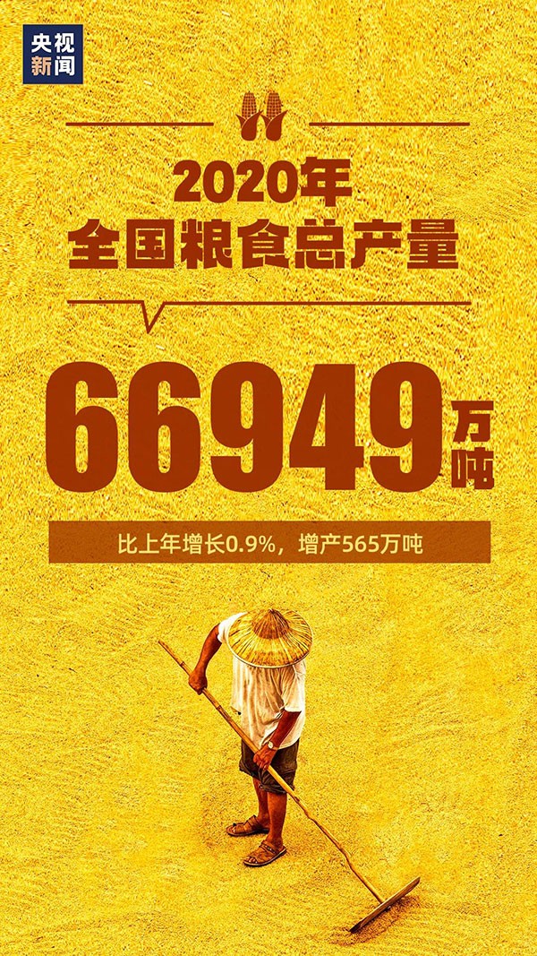 2020年全年貨物進出口總額321557億(yi) 元,比上年增長1.9%;全國糧食總產(chan) 量66949萬(wan) 噸,比上年增長0.9%;城鎮新增就業(ye) 1186萬(wan) 人,明顯高於(yu) 900萬(wan) 人以上的預期目標,居民人均收入比2010年翻一番……